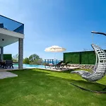 As vistas para o jardim podem ser apreciadas desta vila. As casas de banho também incluem banheira de hidromassagem.